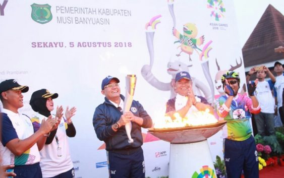 SEKAYU, SIMBUR – Tercatat dari 50 kota dan 18 provinsi di Indonesia, Sekayu Musi Banyuasin terpilih menjadi salah satu daerah yang dilintasi api obor Asian Games 2018. Api obor resmi disambut dan diterima secara langsung oleh Bupati Musi Banyuasin H Dodi Reza Alex Noerdin, Minggu (5/8) petang.