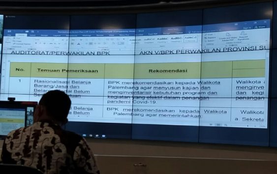 Diketahui, BPKP Sumsel merekomendasikan Wali Kota Palembang agar menyusun kajian dan menginventarisir kebutuhan program dan kegiatan yang efektif dalam penanganan pandemi Covid-19. Media ini mencoba menelusuri kebenaran informasi saat pembahasan Action Plan Hasil Pemeriksaan Kepatuhan Penanganan Covid-19 Pemerintah Kota Palembang bersama BPKP Sumsel di Command Center Pemkot Palembang, Jumat (18/12) lalu.