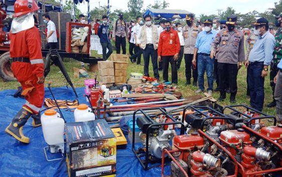 PALEMBANG, SIMBUR – Dalam rangka antisipasi bencana kebakaran hutan dan lahan (karhutla), maka digelar apel kesiapsiagaan dan gelar sarana dan prasarana (sarpas), Apel berlangsung di lapangan PT Sampoerna Agro Kebun Sumber Sawot GTA di Desa Balian, Kecamatan Mesuji Makmur, OKI, Rabu (9/6/21) sekitar pukul 09.00 WIB.