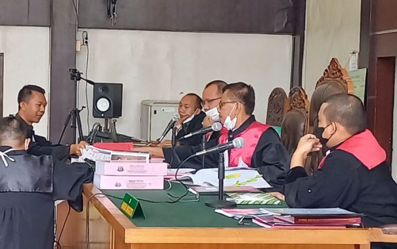 PALEMBANG, SIMBUR – Eks Kades Tanjung Keputran Bayumi (44), Kecamatan Plakat Tinggi, Musi Banyuasin, Selasa (21/12/21) sekitar pukul 10.00 WIB, mengikuti persidangan secara virtual dari Rutan Kelas 2 Sekayu, Muba, dengan agenda tuntutan. Jaksa penuntut dari Kejari Muba Reza Faisal SH dan Candra Irawan SH membacakan tuntutan dihadapan majelis hakim yang diketuai Sahlan Effendi SH MH dengan persidangan digelar di Pengadilan Negeri Tipikor Palembang kelas IA khusus.