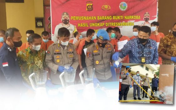 Pemusnahan barang haram itu dipimpin langsung Direktur Reserse Narkoba Polda Sumsel Kombes Pol Heri Istu Hariono SIK MH didampingi bidang humas AKBP Erlangga SH, pada Jumat (21/1/22) pukul 11.30 WIB. Untuk esktasi dan ganja dicampur bubuk diterjen dan diblender. Sedangkan daun ganja kering dibakar.