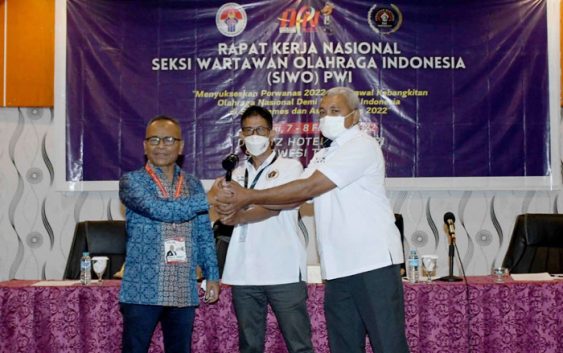 KENDARI, SIMBUR – Ada dua hal yang harus menjadi fokus program kerja Seksi Wartawan Olahraga Persatuan Wartawan Indonesia (Siwo PWI) 2022, Pekan Olahraga Wartawan Nasional (Powarnas) dan sosialisasi Desain Besar Olahraga Nasional (DBON). Hal tersebut diungkapkannya saat membuka Rapat Kerja Nasional (Rakernas) Siwo PWI di hotel DBlitz Kendari, Senin (7/2/2022).