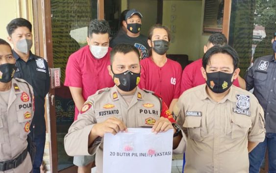Melihat itu anggota melakukan pemeriksaan. Hasilnya barang bukti pil ekstasi warna pink sebanyak 20 butir seharga Rp5 juta. Para pelaku pun digelandang berikut barang bukti dan motor Yamaha Vega ZR BG 2355 IW warna hijau dan motor Honda Beat BG 3565 JAB warna merah.