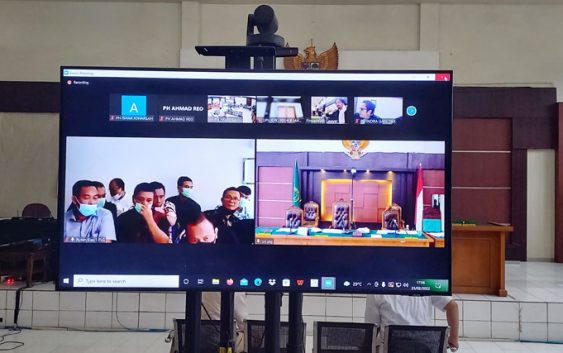 PALEMBANG, SIMBUR – Sepuluh anggota DPRD Muara Enim periode 2014 – 2019 yang jadi terdakwa dihadirkan secara virtual Rabu (23/2/22) pukul 16.30 WIB dari Rutan Pakjo Palembang kelas I. Saksi A Yani eks Bupati Muara Enim dan saksi Ramlan eks Kadis PUPR Muara Enim dihadirkan langsung di persidangan.