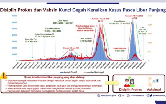 “Hal ini agar masyarakat tetap aman dari penularan Covid-19 di tengah potensi kenaikan aktivitas dan tren mobilitas mudik. Masyarakat diharapkan mampu mematuhi kebijakan pemerintah yang sudah sedemikian rupa dirancang berdasarkan data terkini, fakta ilmiah, dan pengalaman sebelumnya untuk mencegah kemunculan gelombang kasus baru,” ujarnya.