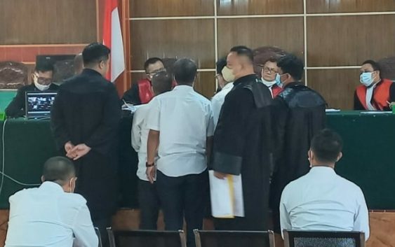 PALEMBANG, SIMBUR – Ketua majelis hakim Mangapul Manulu SH MH didampingi Sahlan Effendi SH MH dan Ardian Angga SH MH, memimpin jalannya persidangan perkara dugaan tipikor dan gratifikasi program PTSL tahun 2019 di Badan Pertanahan Nasional (BPN) Kota Palembang. Sidang berlangsung di Pengadilan Negeri Tipikor Palembang, kelas IA khusus, Rabu (11/5) pukul 08.30 WIB.