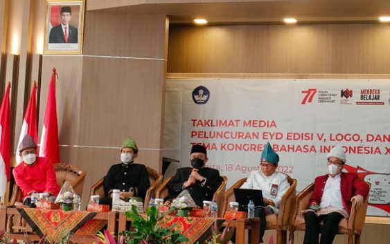 PALEMBANG, SIMBUR – Sehari sebelum peringatan Hari Ulang Tahun (HUT) ke-77 Proklamasi Kemerdekaan Republik Indonesia, tepatnya pada 16 Agustus 2022, Badan Pengembangan dan Pembinaan Bahasa (Badan Bahasa), Kementerian Pendidikan, Kebudayaan, Riset, dan Teknologi (Kemendikbudristek) Republik Indonesia merilis Ejaan Bahasa Indonesia yang Disempurnakan (EYD) Edisi V. Ejaan Bahasa Indonesia terbaru itu secara resmi diluncurkan bersamaan dengan tema dan logo Kongres Bahasa Indonesia (KBI) XII di Aula Sasadu, Kantor Badan Bahasa, Rawamangun, Jakarta Kamis (18/8).