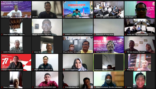 JAKARTA, SIMBUR – Antusiasme untuk mengikuti Anugerah Kebudayaan PWI Pusat tahun 2023 tinggi. Tergambar dari semangat para bupati/wali kota dalam zoominar sosialisasi Anugerah Kebudayaan PWI Pusat 2023 yang digelar Jumat (19/8).