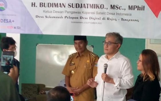 JAKARTA, SIMBUR – Ketua Dewan Pengawas Satelit Desa Indonesia, H Budiman Sudjatmiko MSc MPhil meresmikan TelkoDesa pada Senin (5/9). Desa Sukamanah Pelopor Desa Digital di Wilayah Kecamatan Rajeg Kabupaten Tangerang, Banten.