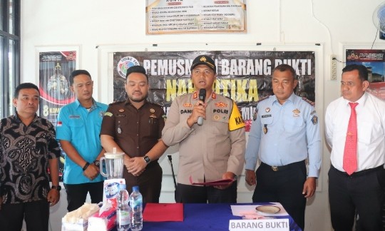 “Hari ini, kami bersama-sama BNNK Mura, Lapas Narkotika Muara Beliti, penasihat hukum memusnahkan BB, sabu seberat 116,60 gram dan ekstasi 25 butir atau seberat 7,10 gram dari hasil tangkapan, tersangka, HL di Desa Tanah Periuk, Kecamatan Muara Beliti,” kata Kapolres.