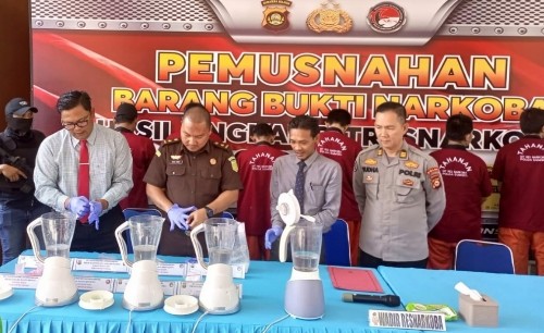 “Pemusnahan narkotika dj bulan Juli 2023, dari 8 LP, dengan 13 orang tersangka dan barang bukti sabu 1.030 gram atau 1 Kg lebih dan 439 butir ekstasi,” ungkap Harissandi.