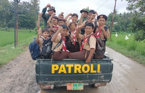 Selain Angkut Material, Mobil Patroli Dipakai Mengantar Siswa ke Sekolah