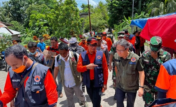 JAKARTA, SIMBUR – Memasuki hari ketiga kunjungan kerja untuk mengawal operasi penanganan darurat erupsi Gunungapi Ruang, Kepala Badan Nasional Penanggulangan Bencana (BNPB) Letjen TNI Suharyanto S.Sos., M.M., mengunjungi lokasi pengungsian warga yang berada di Pulau Siau, Kabupaten Kepulauan Siau Tagulandang Biaro (Sitaro). Kunjungan berlangsunh Sabtu (4/5). Pulau Siau ini berada di sebelah utara dari Gunungapi Ruang dan dipastikan aman. Itu karena lokasinya jauh dari wilayah zona Kawasan Rawan Bencana (KRB) Gunungapi.