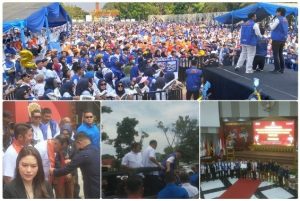 PALEMBANG – Calon gubernur dan calon wakil gubernur Sumatera Selatan Herman Deru dan Cik Ujang (HDCU) menggelar deklarasi di Jakabaring Sport City (JSC). Usai deklarasi, kedua pasangan tersebut diantar massa ke kantor Komisi Pemilihan Umum Provinsi Sumatera Selatan (KPU Sumsel) di Jakabaring Palembang, Senin (27/8).