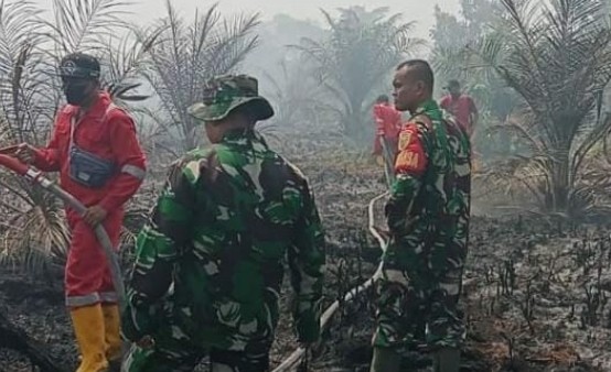 Babinsa Sertu Rudianto mengatakan upaya anggota Koramil terhadap kebakaran lahan masyarakat yakni memadamkan api menggunakan alat mesin pompa bersama warga, Ia juga menjelaskan bahwa lahan kebun sawit yang terbakar seluas 1 Ha.