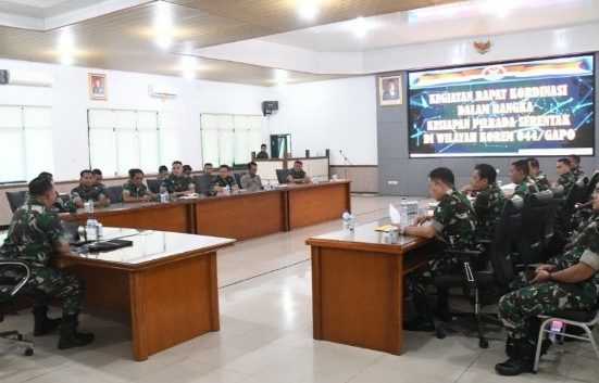PALEMBANG, SIMBUR – Korem 044/Gapo menggelar Rapat Koordinasi (Rakor) Kesiapan Pengamanan Pilkada Serentak Wilayah Provinsi Sumsel. Rakor diadakan di aula Makorem Gapo, Jalan Jenderal Sudirman, Palembang Jumat (13/09) lalu. Rakor dipimpin langsung oleh Kasi Intel Kasrem Gapo Kolonel Inf M Arief Gumelar.
