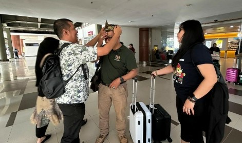 Kedatangan enam delegasi yang terdiri dari lima pria dan satu wanita tersebut disambut hangat Panitia Lokal HPN Riau. Saat keluar dari pintu kedatangan domestik, keenamnya dipasangkan Tanjak oleh Bujang dan Dara Riau 2024, sebagai simbol di Tanah Melayu Riau.