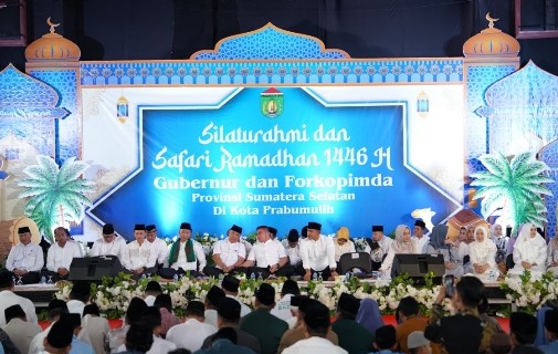 PRABUMULIH, SIMBUR – Gubernur H Herman Deru dan Forum Komunikasi Pimpinan Daerah (Forkompimda) Provinsi Sumatera Selatan menghadiri Silaturahmi dan Safari Ramadhan 1446 H/2025 M. Gubernur didampingi Wakil Gubernur Sumsel H. Cik Ujang, Pangdam II Sriwijaya Mayjen TNI Ujang Darwis, dan Kapolda Sumsel Irjen Pol Andi Rian. Kegiatan berlangsung di Pendopo Rumah dinas Wali Kota Prabumulih, Jl Jenderal Sudirman Kecamatan Prabumulih Timur kota Prabumulih, Jumat (14/3).