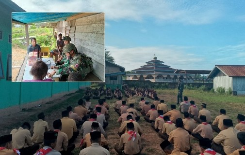 Satgas Yonif 144/JY Latih Kepramukaan, Satgas Yonif 141/AYJP Berikan Layanan Kesehatan dan Pengamanan