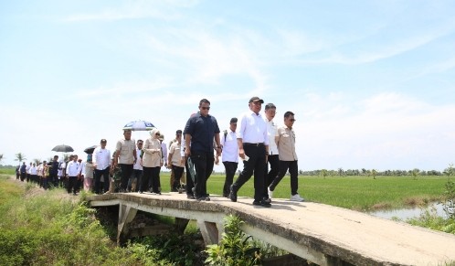 “Adapun lahan sawah yang baru ditinjau sebelumnya sudah menghasilkan 7 ton, merupakan kondisi lahan sawah pasang surut, dengan rata-rata produksi beras sebanyak 5,8 ton hasil panen,” jelasnya.