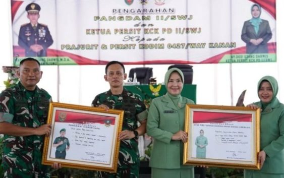 Kunjungan kerja tersebut turut didampingi Ketua Persit Kartika Chandra Kirana Daerah II/Sriwijaya, Ny. Desi Ujang Darwis, serta sejumlah pejabat utama Kodam II/Sriwijaya. Kedatangan Pangdam disambut hangat oleh Pgs. Dandim 0427/Way Kanan, Letkol Inf M. Sofrianes Salam, S.Ag., dengan rangkaian tradisi penyambutan berupa pengalungan syal, pemberian hand bucket, laporan kehormatan dari Pos Jaga 1, serta jajar kehormatan dari Regu Jaga Kesatrian.