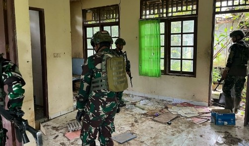 Jaga Situasi Tetap Kondusif, Sisir Bekas Bangunan di Jalan Trans Papua