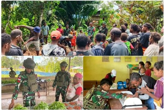 Satgas Yonif 144/JY Belanja Hasil Bumi dan Bantu Pemakaman Warga, Satgas Yonif 141/AYJP Gelar Posyandu dan Pengecekan Malaria