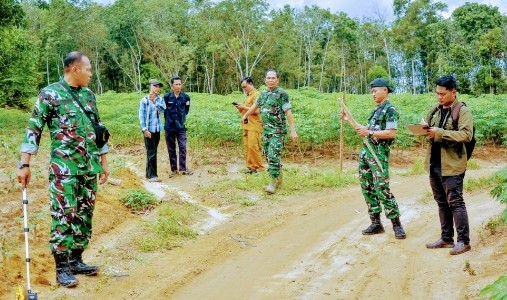 BANDARLAMPUNG, SIMBUR – Pastikan Sasaran Fisik rencana TMMD ke 125 dapat berjalan optimal dan tepat sasaran, Pgs. Pasiter Kodim 0426 Tulang Bawang, Kapten Inf Sutio, melakukan peninjauan langsung ke lokasi rencana pelaksanaan Tentara Manunggal Membangun Desa (TMMD) ke-125 Tahun 2025. Kegiatan berlangsung di Kampung Moris Jaya, Kecamatan Banjar Agung, Kabupaten Tulang Bawang, Senin (23/06).