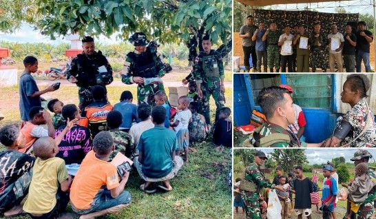 Satgas Yonif 144/JY Gelar Bansos, Pemberkatan, Kesehatan Keliling dan Edukasi