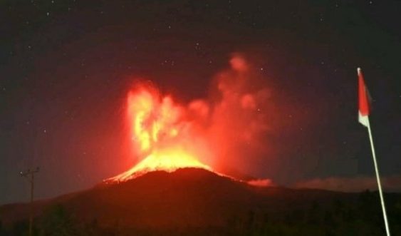 JAKARTA, SIMBUR – Gunung Api Lewotobi Laki-Laki di Provinsi Nusa Tenggara Timur. Erupsi kembali meletus pada Sabtu (2/8) pukul 01.05 WITA. Dengan tinggi kolom abu teramati 18.000 meter di atas puncak kawah. Kolom abu teramati berwarna kelabu hingga hitam dengan intensitas tebal condong ke arah barat daya, barat, dan barat laut.