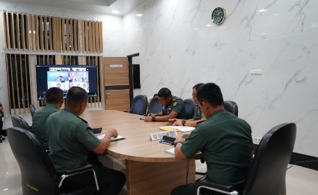 PALEMBANG, SIMBUR – Pangdam II/Sriwijaya Mayjen TNI Ujang Darwis, M.D.A. mengikuti Rapat Koordinasi Apel Kesiapsiagaan Bencana Hidrometeorologi Basah secara video conference (vicon). Kegiatan diikuti dari ruang rapat Pangdam II/Sriwijaya, Palembang. Senin (29/12).