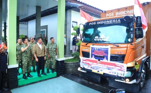 PALEMBANG, SIMBUR — Gubernur Sumatera Selatan (Sumsel) Dr H Herman Deru bersama Pangdam II Sriwijaya Mayjen TNI Ujang Darwis secara resmi melepas bantuan kemanusiaan untuk korban bencana hidrometeorologi di tiga provinsi meliputi Provinsi Aceh, Sumatera Barat dan Sumatera Utara. Pelepasan armada pengiriman bantuan bertempat di Markas Kodam II Sriwijaya, Jumat (9/1).