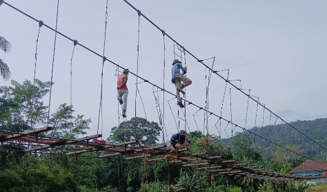 Progres Pembangunan Jembatan Gantung Desa Pusar Capai 80,50 Persen