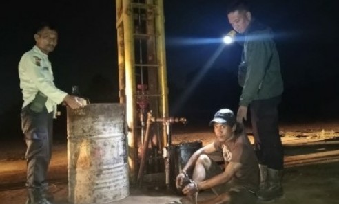 Merespons cepat informasi masyarakat, tim yang terdiri dari Serma Samsul Edi dan Sertu Rino Wira Husada dari Kodim 0401/Muba, didampingi Danru Security SP Mangunjaya Indra Jaya, serta Patrolman Gusrom langsung bergerak ke titik lokasi. Di sana, petugas menemukan seorang pria yang tengah sibuk mengisi drum dengan minyak mentah. “Pelaku diketahui menggunakan alat timba yang dimodifikasi dari jerigen dan tali untuk mengeruk minyak dari dalam sumur,” ungkapnya.