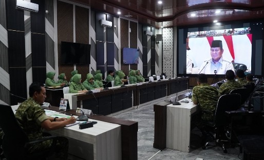PALEMBANG, SIMBUR – Pangdam II/Sriwijaya Mayjen TNI Ujang Darwis, M.D.A., didampingi Ketua Persit Kartika Chandra Kirana Daerah II/Sriwijaya, Ny. Desi Ujang Darwis, mengikuti Launching 218 Jembatan Garuda melalui Video Conference (Vicon). Kegiatan diikuti dari Gedung Puskodalopsdam II/Sriwijaya Palembang, Senin (9/3).