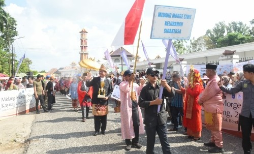 Diketahui, Midang Morge Siwe merupakan tradisi arak-arakan budaya khas masyarakat Kayuagung. “Midang” berarti berjalan kaki atau berarak-arakan menggunakan pakaian adat, sedangkan “Morge Siwe” merujuk pada sembilan marga atau dusun asli pembentuk wilayah Kayuagung, yakni Kayuagung Asli, Perigi, Kutaraya, Kedaton, Jua-Jua, Sidakersa, Mangunjaya, Paku, dan Sukadana.