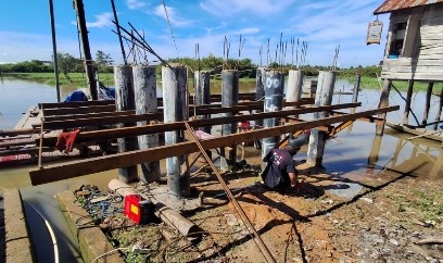 KAYUAGUNG, SIMBUR – Pengerjaan dua jembatan gantung di wilayah Ogan Komering Ilir (OKI) terus dikebut. Dua jembatan gantung yang sedang dikerjakan adalah Jembatan Gantung Sungai Dabok di Desa Embacang, Kec. Mesuji Raya, dan Jembatan Gantung Desa Kuala Dua Belas, Kec. Tulung Selapan.